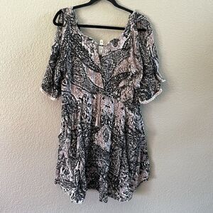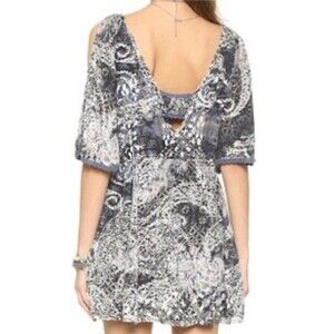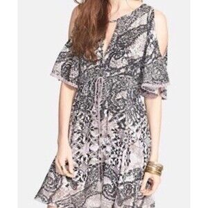 Free People Love Birds Mini Dress Medium Black Pink Cold-Shoulder Boho Festival