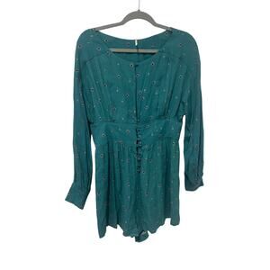 Step out in style with this adorable Free People Love Grows romper! This long-sleeve romper comes in a beautiful green color and is perfect for transitioning between seasons. It is in excellent condition. It is a size medium, offering a comfortable and flattering fit.