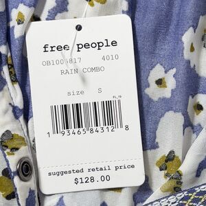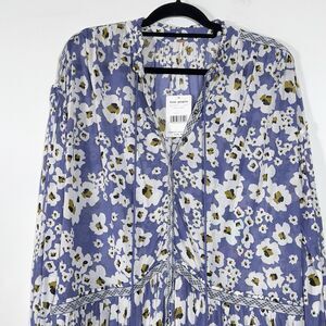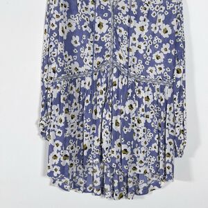 Free People Love Letter Tunic Top Mini Dress Sz S Blue Floral Long Sleeve