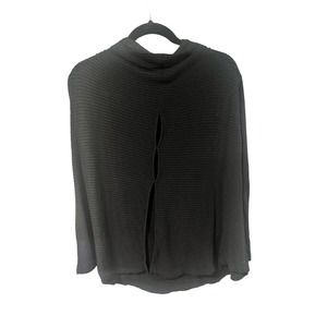Free People Love Split Back Ribbed Cowl Neck Thermal Sweater Open Back in Black