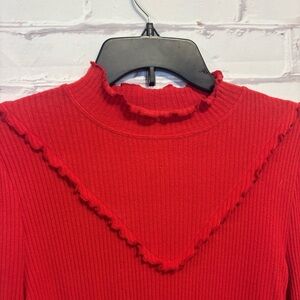 Free People “Love Struck” Ruffle Turtleneck Top in bold red Size Small