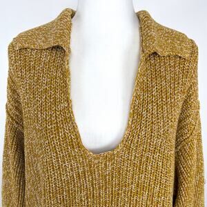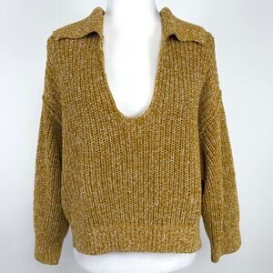 Free People Love This City Cropped Mustard V-Neck Collared Sweater Size Medium