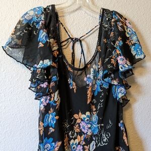 Free People Love to Love Floral Mini Dress Short Flutter Sleeves Sz.S EUC