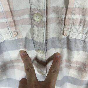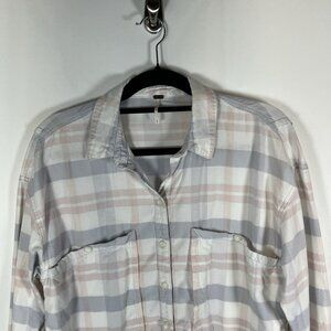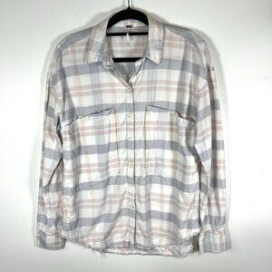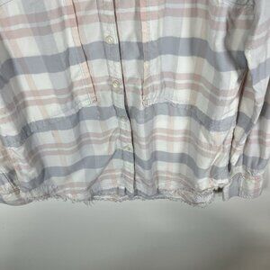 Free People LoveLand Pastel Plaid Button Down Frayed Hem Boho Shirt Small