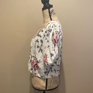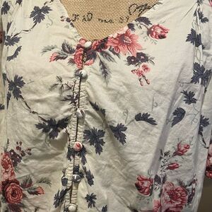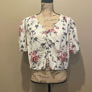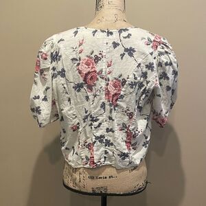 LoveShackFancy button up crop top in a cool floral print. Pre-owned but in good condition.