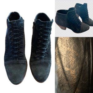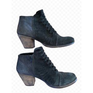 Free People Loveland Ankle Bootie Black Suede Braided Front Women's 37 7.5 7