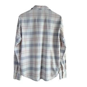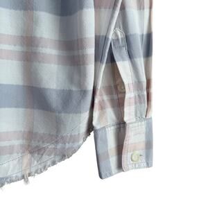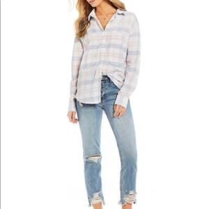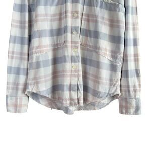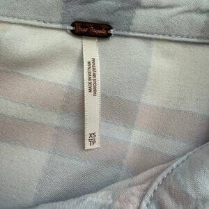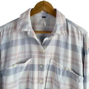 Free People Loveland Plaid Button Down Shirt Top White Pastel Pink Blue, Size XS