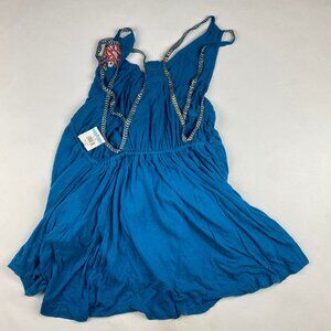 Free People Lovers Cove Mini Dress Size XS Teal Embroidered