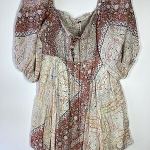 Free People Lovesick Lace Up Boho Smocked Mini Dress