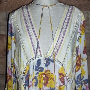 Free People Lovestoned Floral Tunic size Small Crochet Button Down Tassels *read