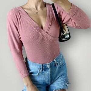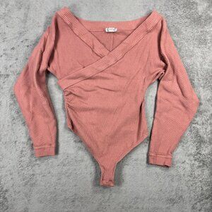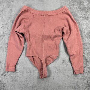 Free People Lovin' This Feeling Long Sleeve Bodysuit Soft Pink Womens XS Preppy