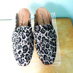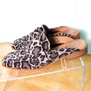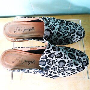Free People Low Heel Slip On Shoes Animal Print Mules Made in Spain. Size 7 M