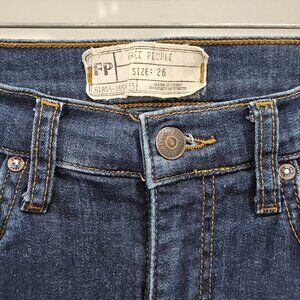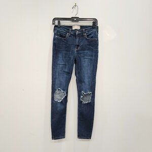 Free People Low Rise Distressed Ripped Skinny Blue Denim Busted Jeans Size 26