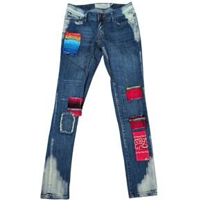 Free People Low Rise Patchwork Jeans W26 Distressed Boho Festival Retro Grunge