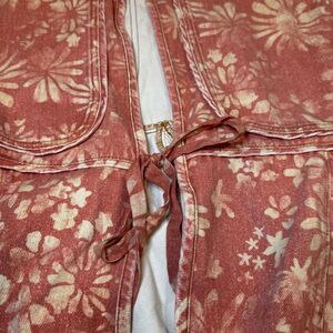 Free People Lua Bed Floral Denim Jacket - Size Medium, Apricot Combo, NWOT