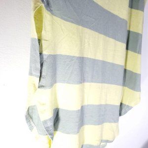 A combination of crochet knits and a stripe prints complete this long tank top. Square neck, Sleeveless, Slips on over head, Crochet knit construction, Printed, Lightweight, great for spring, summer and layering.