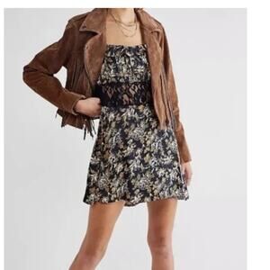 Free People Lucie Dark Floral Lace detail Mini Dress 8