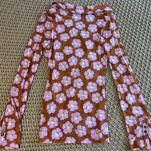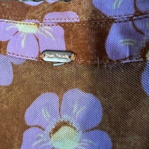 Gently used and in excellent condition Free People Lucky Sheer Shirtee in Coffee Combo Retro Pink Flower Sz Small.