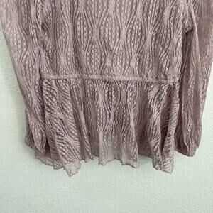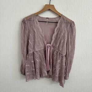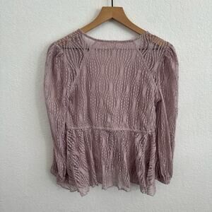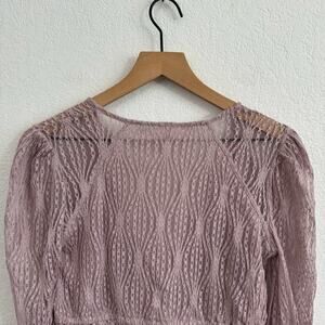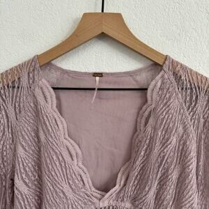 Free People Luisa Sheer Lace V-Neck Long Sleeve Babydoll Top Lavender Purple S