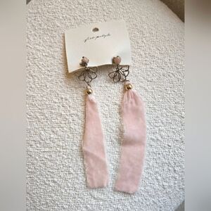Free People, Lulu Dangles Earrings, Pink Velvet Ribbon, NWT!