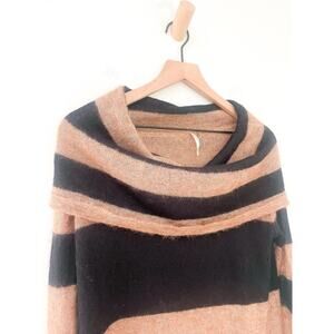 Free People Lulu Rugby Stripe Sweater XS Alpaca Cowl Neck Off Shoulder Casual