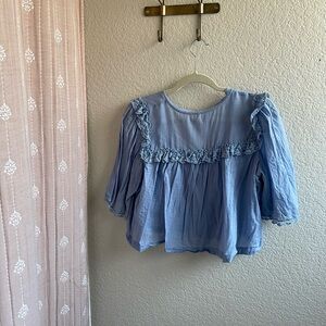 Effortlessly femme and so sweet, this billowy blouse is featured in a soft cotton fabrication and slightly cropped fit with delicate lace trim and puff-inspired sleeve detail.