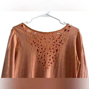 Free People Luna Washed Embroidered Cutout Henley Top M