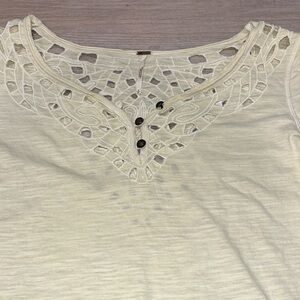 Free People Luna cutout henley long sleeve Ivory cream yellow Small Anthro