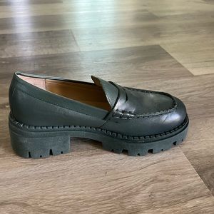 Free People Lyra Green Leather Chunky Penny Loafer Size 7.5