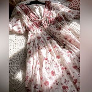 Free People Lysette Bohemian Rose Maxi Dress in Medium