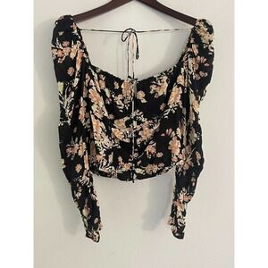 Free People M Blouse Black Floral Long Ruched Sleeve Hilary Printed ob1569574