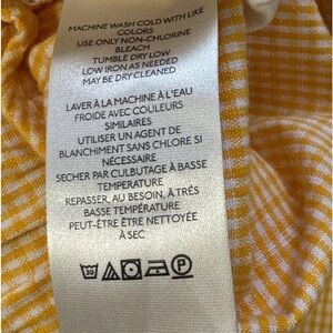 Great condition! These pants appear more yellow in the pictures but they are actually orange and white check gingham.
