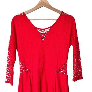 Free People M To The Point Dress with Lace Cut Outs Eyelet Long Sleeves