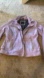 Chic lavender leather jacket. Features zippered pockets and stylish design. Ideal for a trendy look.