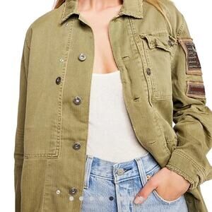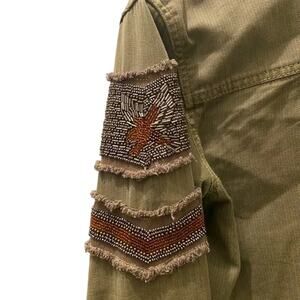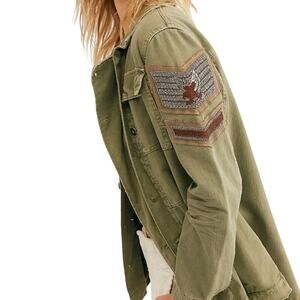 Free People MEDIUM Embellished Military Jacket in Olive Army green EUC
