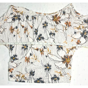 Free People MEDIUM Last Time FLORAL Printed Draped Bell-Sleeve BOHO Top Ivory