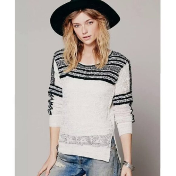 Free People MILES AWAY SWIT Knit Pull On Lightweight Sweater BOHO Sz XS