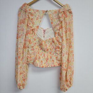Free People Mabel Blouse Size Sm Floral Sheer Long Sleeve Coquette Boho Festival
