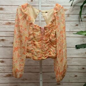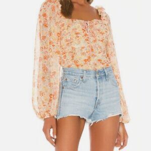 Free People Mabel Printed Blouse in Spring Combo NWT S