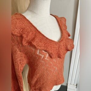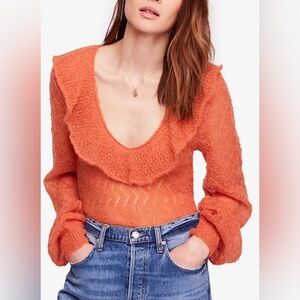 Free People Macaroon Ruffled-Neck Sweater OrangeKnit Sweater