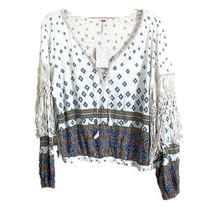 Free People Macra Maze Me Oversized Pullover Top Medium Fringe Boho Festival