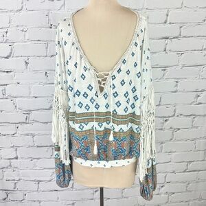 Free People Macra Maze Me Top Fringe Linen Women’s Small Boho Festival Western