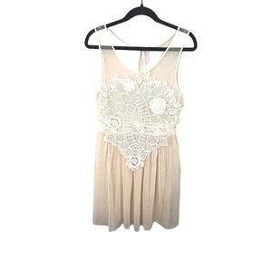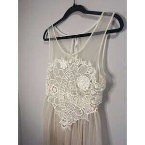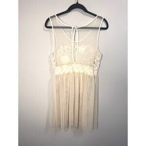 Free People Macrame Crochet Front Cream Mini Dress or Top Sheer Feminine sz. M