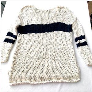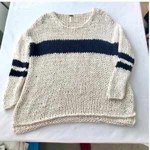 Free People stretchy macrame like style, cream ivory off-white color with navy blue stripes, size xs - but fits more like a regular small - Free People tends to run large.
