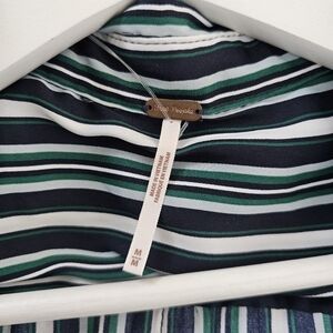 Free People Mad About You Button Down Shirt Top Navy Green Striped Size M