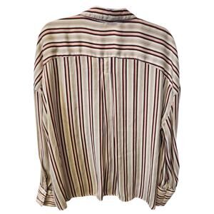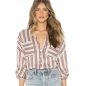 Free People Mad About You Red Striped Satin Deep Neckline Button Up Shirt Large