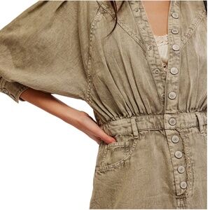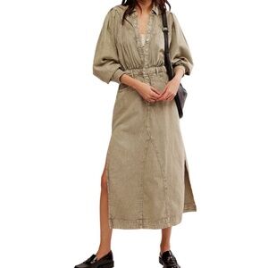 Free People Mad Love 100% Cotton Side Slit Midi Dress Sage Size Small NWT