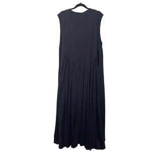 Free People Beach Madelyn Midi Dress in classic black, crafted from soft 100% cotton with an airy, free-flowing shape. Features a scoop neckline, empire waist seam, sleeveless cut, side pockets, and a gorgeous high-low hem that moves with every step. Sold out online. New without tags, never worn. Please note: there is a minor manufacturing flaw — two small repaired holes at the front side seam with a clean reinforced stitch (see photos). Repair is secure and not noticeable when worn. Measurements in photos.