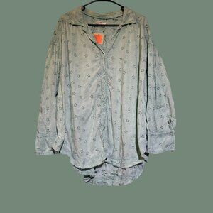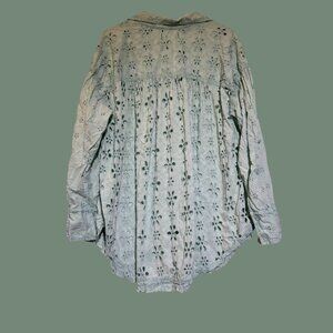 Free People Mae Washed Eyelet Shirt Size Large NWOT