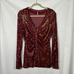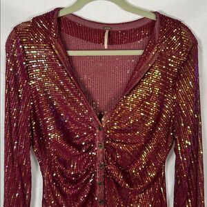 Free People Magenta Sequin Long Sleeve Button Down Shirtee Top Size L